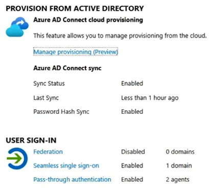 The domain syncs to an Azure AD tenant named contoso.com as shown in the exhibit. (Click the Exhibit tab.)