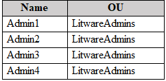 The network of Litware contains an Active Directory domain named litware.com. The domain contains three organizational units (OUs) named LitwareAdmins, Montreal Users, and Seattle Users and the users shown in the following table.