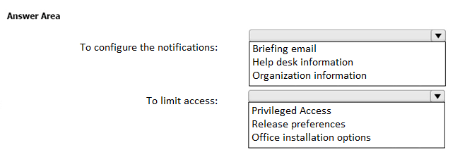What should you configure in the Microsoft 365 admin center? To answer, select the appropriate options in the answer area.