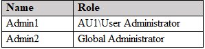 You create a new administrative unit named AU1 and configure the following AU1 dynamic membership rule.