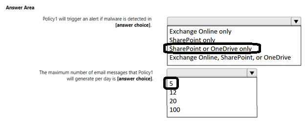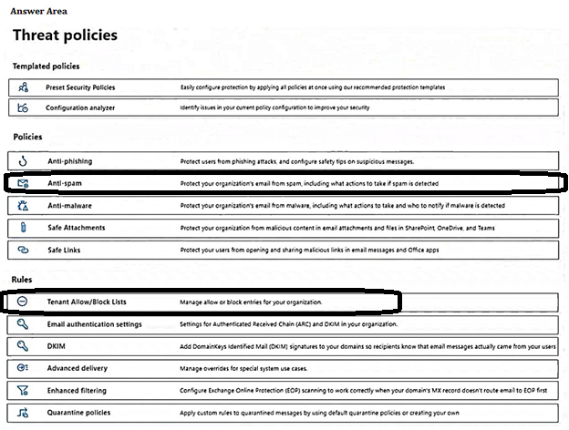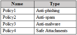 Which two threat policies should you configure in Microsoft Defender for Office 365? To answer, select the appropriate threat policies in the answer area.