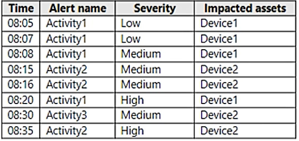 In Microsoft 365 Defender, alerts are logged as shown in the following table.