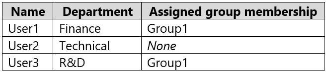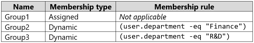 You have a Microsoft 365 E5 subscription that contains the security groups shown in the following table.