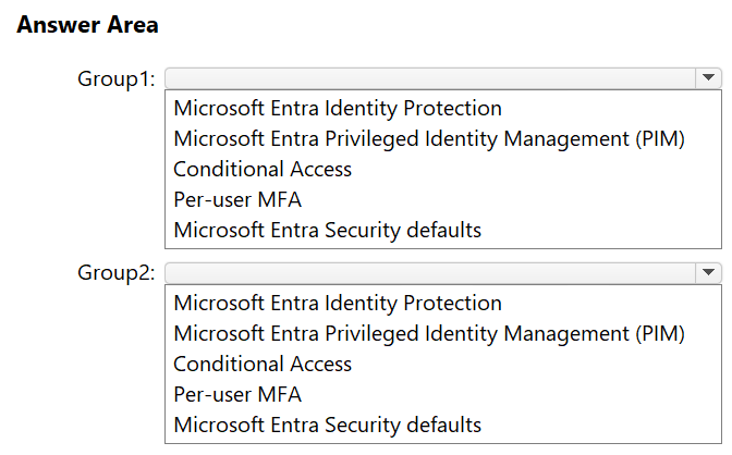 You have a Microsoft 365 E5 subscription that contains two security groups named Group1 and Group2.