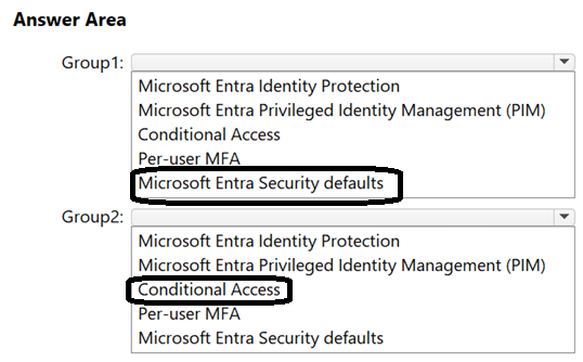 • The Group1 members must be prompted for MFA only when authenticating to Microsoft Entra ID from Android devices.