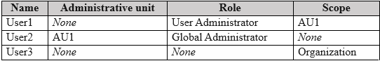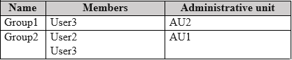 You have a Microsoft 365 subscription that contains two administrative units named AU1 and AU2.