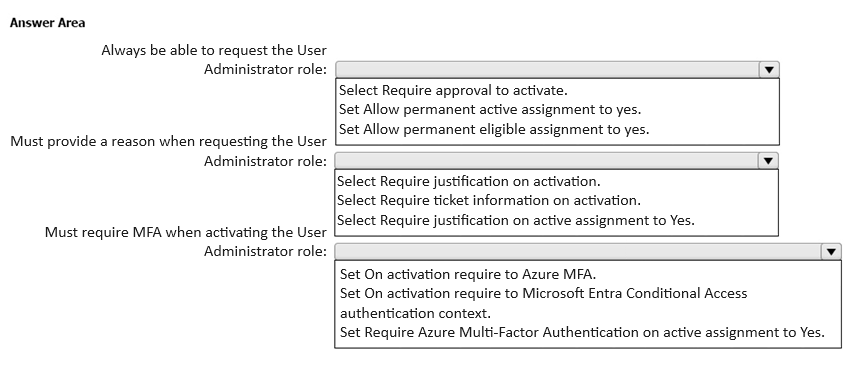 You need to configure Privileged Identity Management (PIM) for the User Administrator role in Microsoft Entra. Eligible users must meet the following requirements: