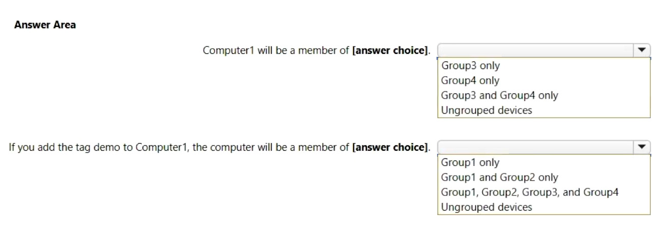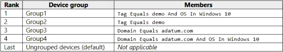 Your company uses Microsoft Defender for Endpoint. Microsoft Defender for Endpoint includes the device groups shown in the following table.