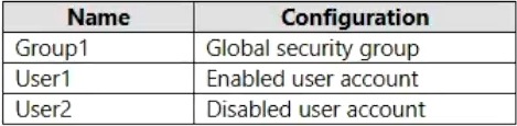 Your network contains an on-premises Active Directory domain named contoso.com. The domain contains the objects shown in the following table.