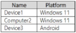 You have devices onboarded to Microsoft Defender for Endpoint as shown in the following table.