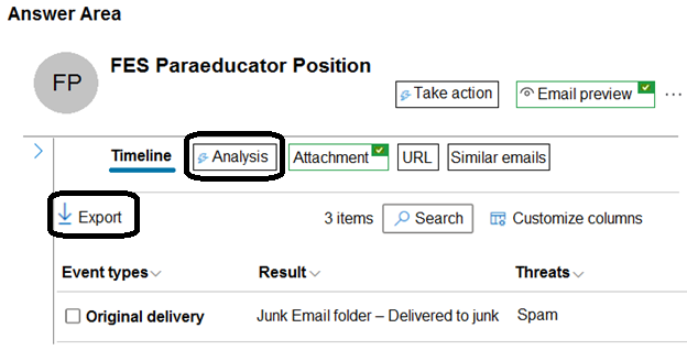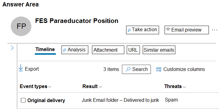 You are investigating a suspicious email message that generated alerts in the Microsoft Defender portal.
