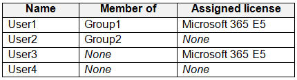 You have a Microsoft 365 E5 subscription that contains the users shown in the following table.