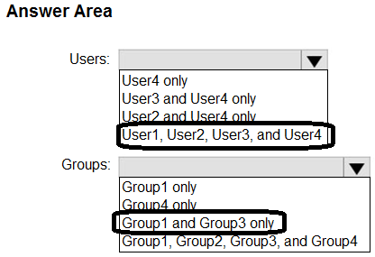 Which users and groups can you delete? To answer, select the appropriate options in the answer area.